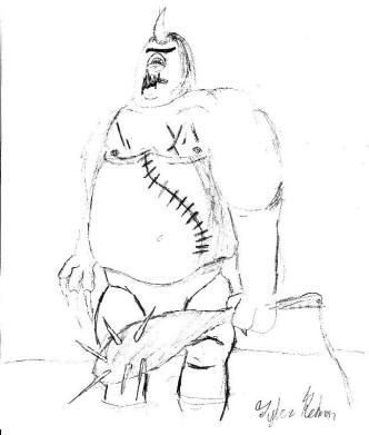 him right there. First, it looked like an ordinary man, only really tall, but then I noticed that